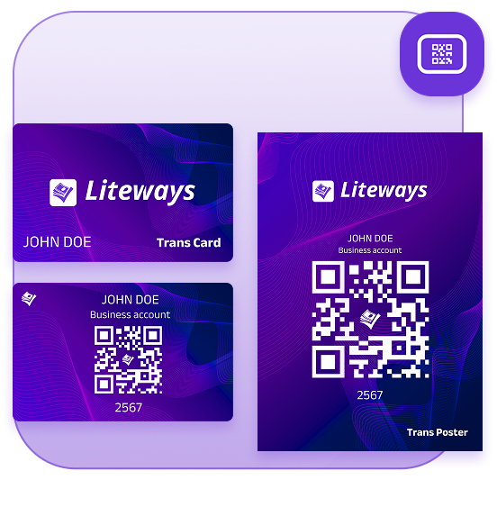 Liteways empowers users with the ability to generate Trans Cards and Trans Posters for seamless transactions without a smartphone. The Trans Card features a unique QR code linked to your account, allowing for quick payments in-store or online. Meanwhile, the Trans Poster serves as a portable advertising tool for businesses, showcasing your QR code for easy customer transactions. Both options ensure that you're never without access to your funds, even when your phone is out of reach. Enjoy the freedom of flexible payments with Liteways!